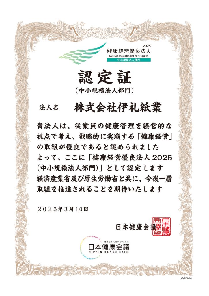 日本健康会議 健康経営優良法人 認定証